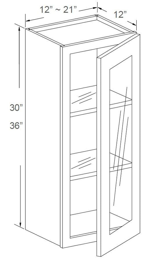 WALL CABINET GLASS INSERT DOOR - 1 DOOR, NO SHELVES, MATCHING COLOR INTERIOR - 12" WIDE X 12" DEEP X 36" HIGH