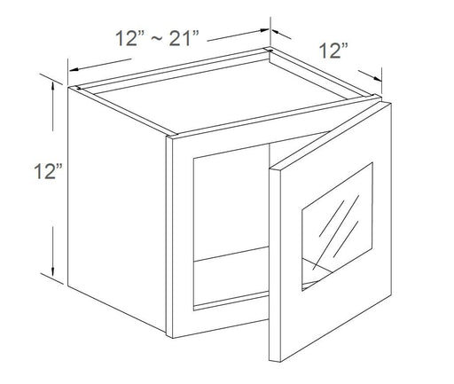 WALL CABINET GLASS INSERT DOOR - 1 DOOR, NO SHELVES, MATCHING COLOR INTERIOR - 21" WIDE X 12" DEEP X 12" HIGH