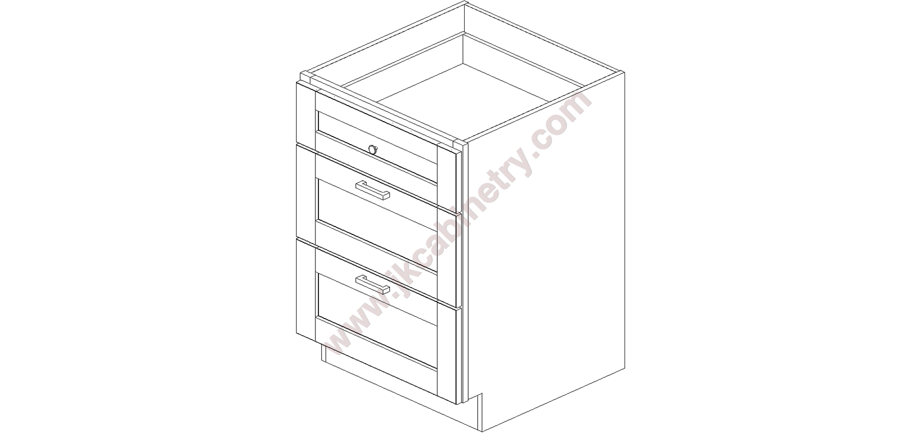 C066/DB24-3 by J&K Cabinetry Login to view price or purchase. SKU C066/DB24-3 BASE DRAWER CABINET 3 DRAWERS - 24" WIDE X 24" DEEP X 34.5" HIGH