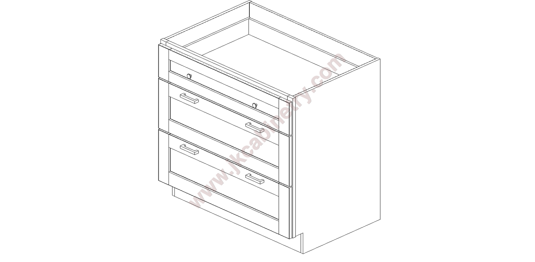 E1/DB36-3 by J&K Cabinetry Login to view price or purchase. SKU E1/DB36-3 BASE DRAWER CABINET 3 DRAWERS - 36" WIDE X 24" DEEP X 34.5" HIGH
