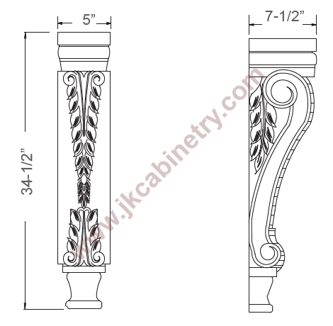 E2/CB34 by J&K Cabinetry Login to view price or purchase. SKU E2/CB34 LARGE CORBEL - 6 1/4" WIDE X 7 1/2" DEEP X 34 1/2" HIGH