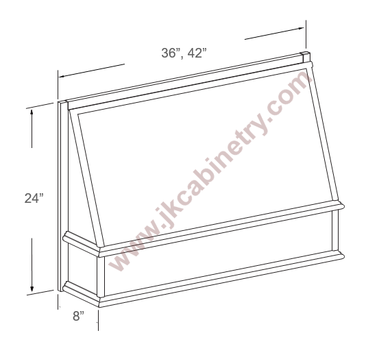 K10/RHE3624 by J&K Cabinetry Login to view price or purchase. SKU K10/RHE2624 RANGE HOOD - 36" WIDE X 24" DEEP X 8" HIGH