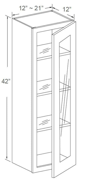K3/WM1842H by J&K Cabinetry Login to view price or purchase. SKU K3/WM1842H WALL CABINET GLASS INSERT DOOR - 1 DOOR, NO SHELVES, MATCHING COLOR INTERIOR - 18" WIDE X 12" DEEP X 42" HIGH