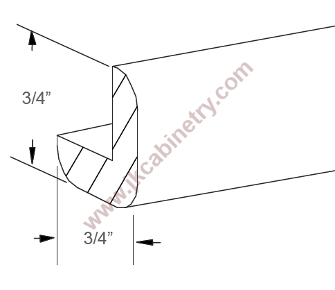 K8/OCM8 by J&K Cabinetry Login to view price or purchase. SKU K8/OCM8 OUTSIDE CORNER MOLDING - 96" WIDE X 3/4" HIGH X 3/4" DEEP