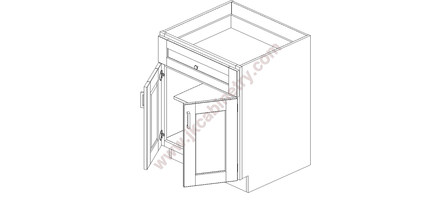 S1/B27 by J&K Cabinetry Login to view price or purchase. SKU S1/B27 BASE CABINET 1 DRAWER, 1 DOOR, 1 SHELF - 27" WIDE X 24" DEEP X 34.5" HIGH