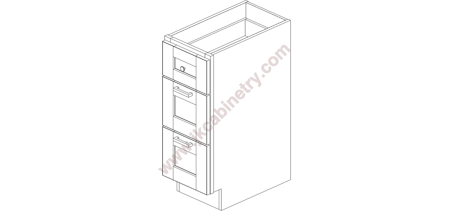 S1/SVA12D by J&K Cabinetry Login to view price or purchase. SKU S1/SVA12D VANITY DRAWER BASE - 3 DRAWERS - 12" WIDE X 21" DEEP X 33" HIGH