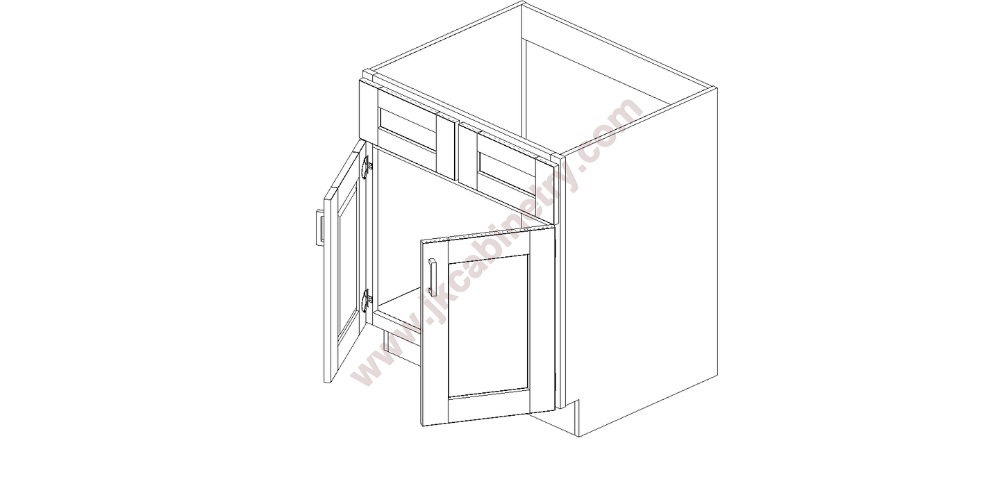 S5/SB30 by J&K Cabinetry Login to view price or purchase. SKU S5/SB30 SINK BASE CABINET 2 DUMMY DRAWERS, 2 DOORS - 30" WIDE X 24" DEEP X 34.5" HIGH