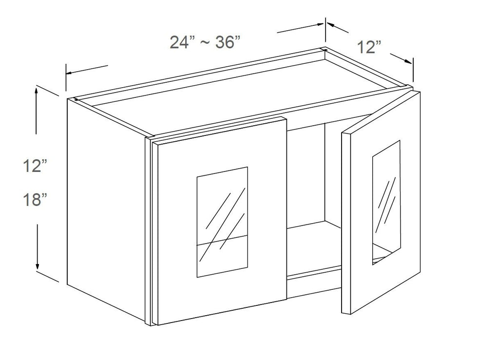 S5/WM3312H by J&K Cabinetry Login to view price or purchase. SKU S5/WM3312H WALL CABINET GLASS INSERT DOOR - 2 DOORS, NO SHELVES, MATCHING COLOR INTERIOR - 33" WIDE X 12" DEEP X 12" HIGH